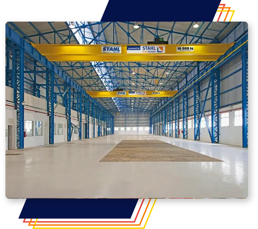 As pontes rolantes STAHL são equipadas com motoredutores de translação com acionamento direto no eixo da roda, o que elimina a utilização de engrenamento externo. Projetadas e construídas por uma equipe de profissionais experientes e com a qualidade de seus componentes, com mais de 100 anos de tecnologia de ponta, as pontes rolantes STAHL atingem o mais alto nível de satisfação dos clientes.