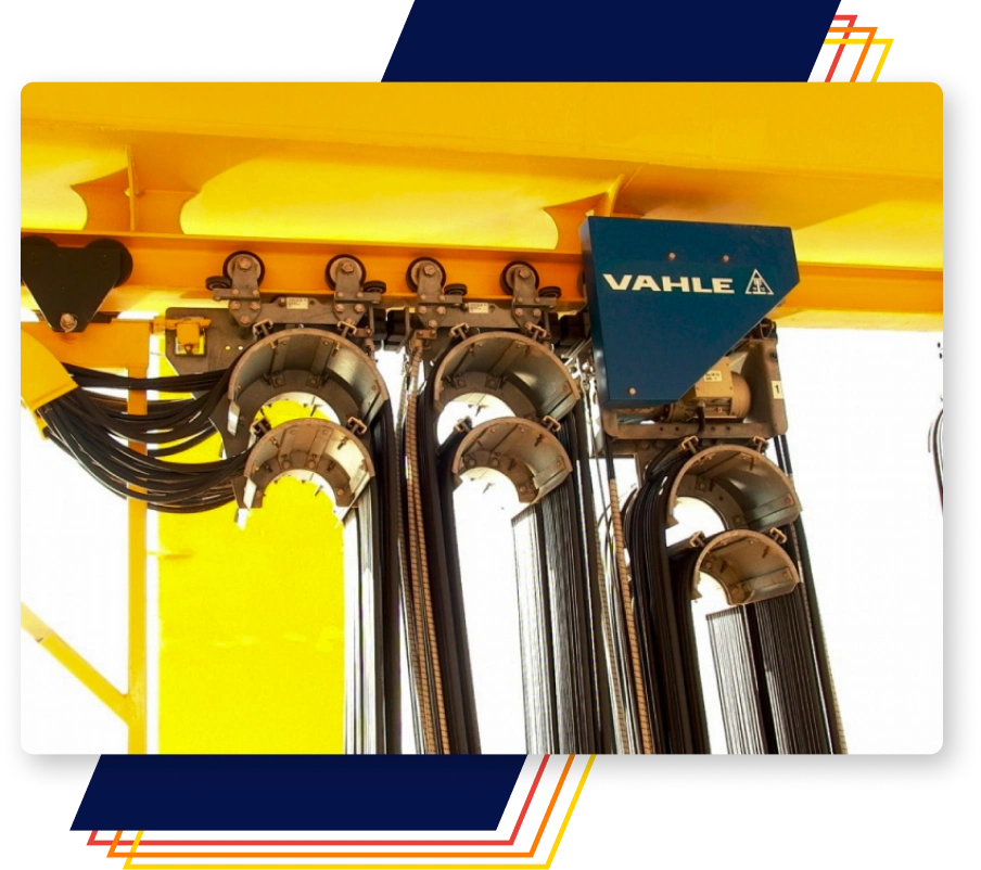 As soluções de eletrificação da VAHLE são as melhores opções do mercado. Através de barramentos blindados, sistemas festonn (cortina de cabos), enroladores de cabos, etc, é possível alimentar eletricamente de maneira segura a sua ponte rolante e toda a sua operação móvel.